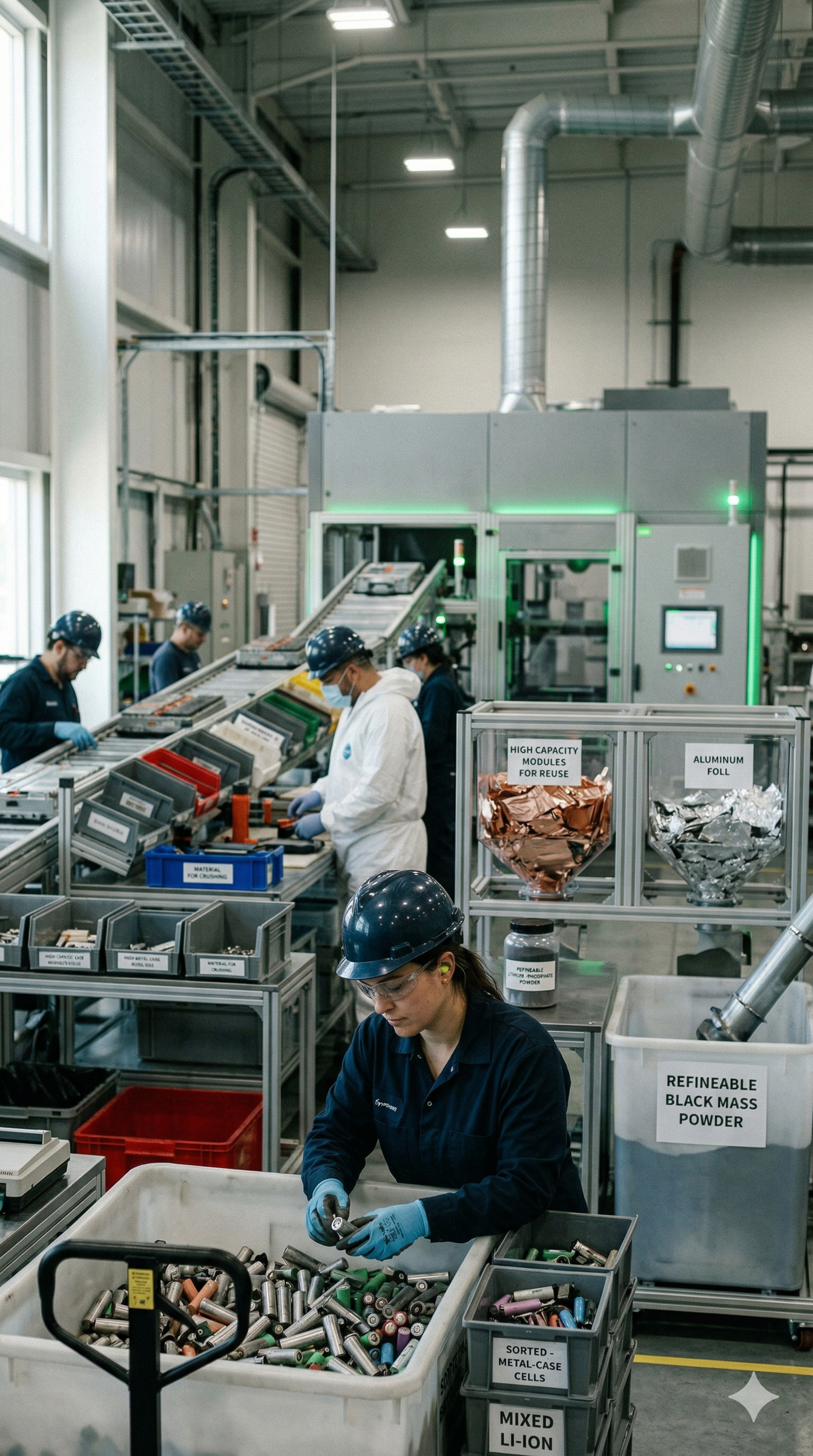 Only batteries meeting strict performance standards are redeployed for second-life use. Others are safely redirected to the recycling process.